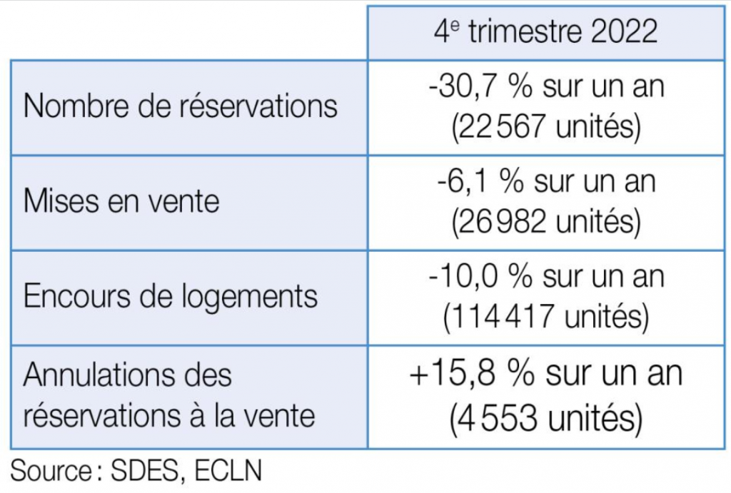Avec une progression de 6,6 % sur 12 mois, le prix moyen d’un appartement neuf dans les communes de plus de 45 000 habitants atteint désormais les 5 592 euros par mètre carré en mai 2023. Cependant , cette bonne nouvelle est à contraster avec la chute des réservations et l’explosion des annulations de réservations et de vente (voir tableau ci-dessous).Le marché du neuf souffre très clairement, et la situation financière des promoteurs également.