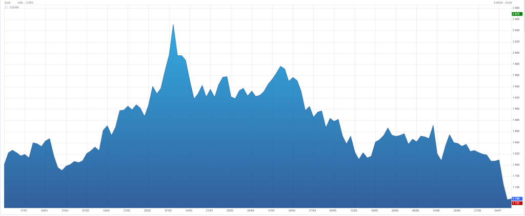 Evolution du prix de l’or du 01/01/2023 au 02/07/2023