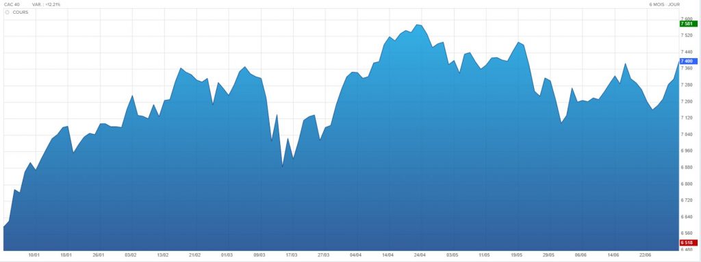 Le CAC 40 du 01/01/2023 au 01/07/2023 (Source Boursorama.com)