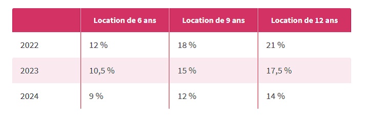 Le Super Pinel sera plus exigeant au niveau environnemental, il accordera aux logements éligibles après 2024 les mêmes taux de réduction d’impot que le premier Pinel, à savoir :